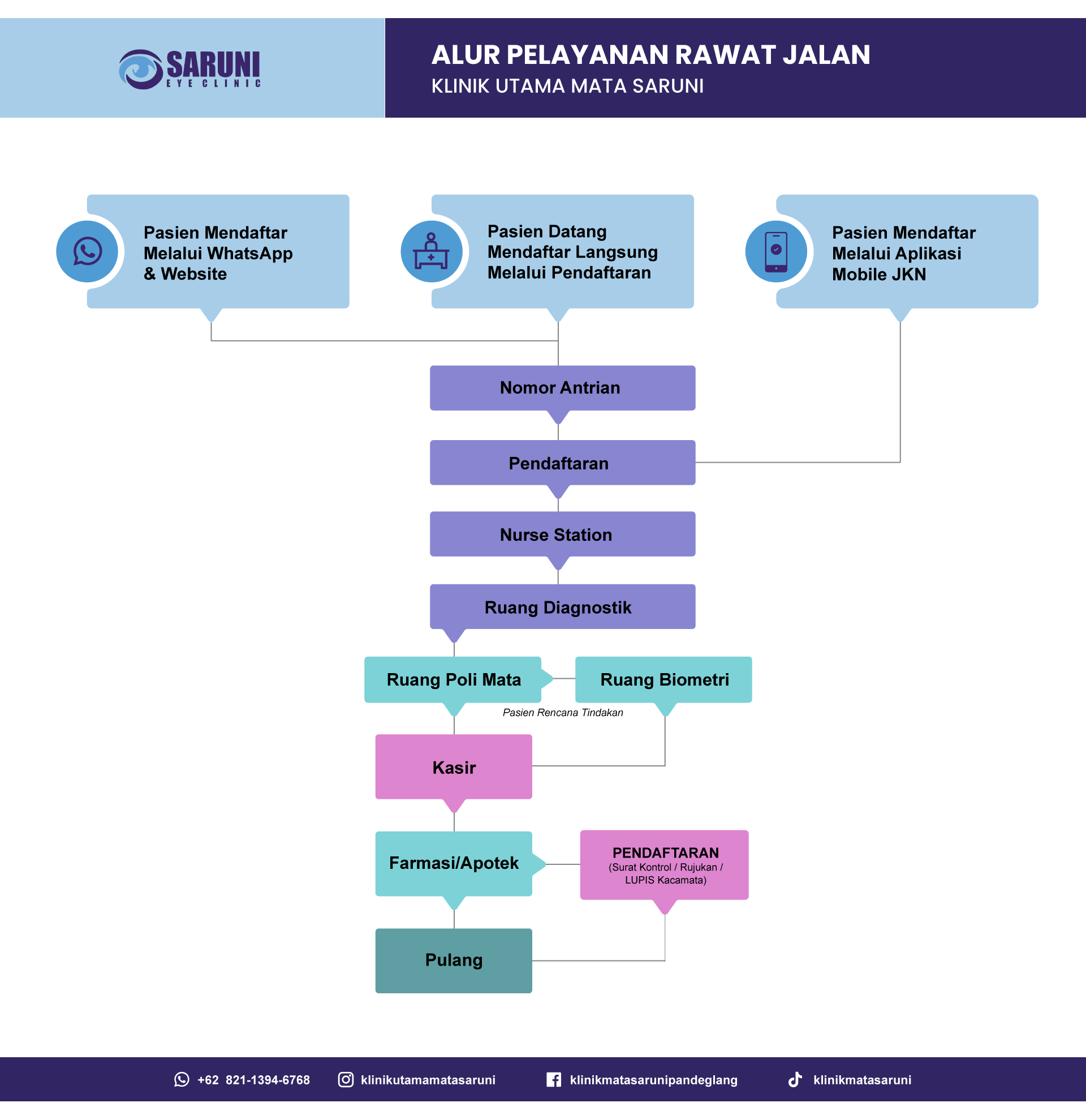 Jangan tunda untuk menjaga kesehatan mata Anda! Hubungi kami di 0253 201713 / 0821-1394-6768 atau kunjungi Klinik Mata Utama Saruni untuk menjadwalkan pemeriksaan mata Anda. Kesehatan mata Anda adalah prioritas kami.